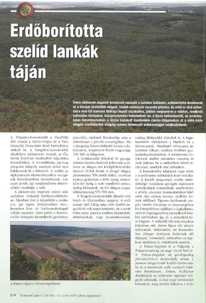 Az elmúlt hetekben a tavalyi évben a Gyulaj Erdészeti és Vadászati Zrt. és az Országos Erdészeti Egyesület társszervezésében megrendezésre került 150. Vándorgyűlésre emlékeztünk vissza. Ezen apropóból osztjuk most meg az alábbi cikket Tolna megye természeti sajátosságairól Gál László erdőművelési és közjóléti ágazatvezetőnk tollából, ami az Erdészeti Lapok 2019. évi Július- Augusztus-i számában jelent meg.