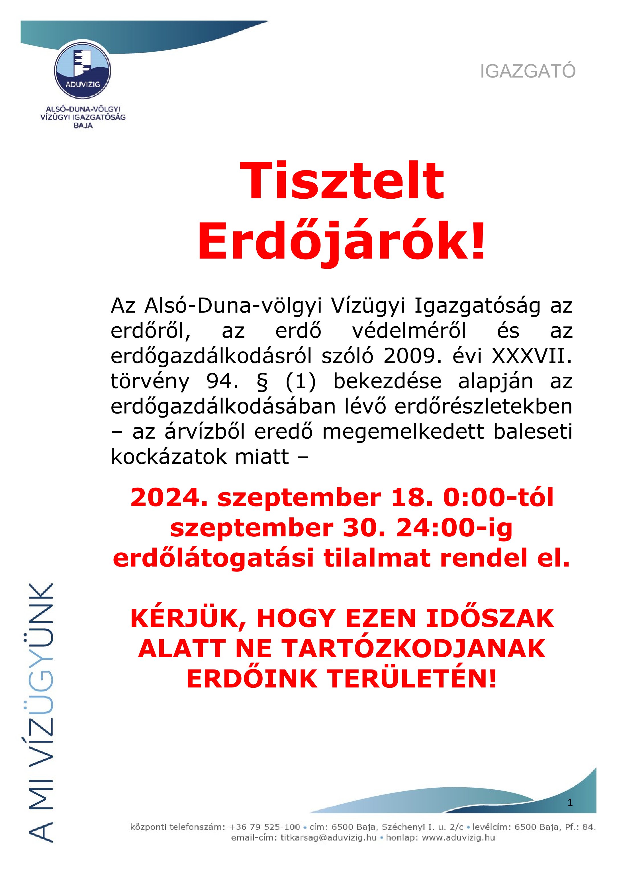 A dunai árvíz miatt a Gyulaj Erdészeti és Vadászati Zrt. a Duna ártérben lévő vagyonkezelt erdejei sem látogathatóak, erdőlátogatási tilalmat rendeltek el a lentebbiek szerint!