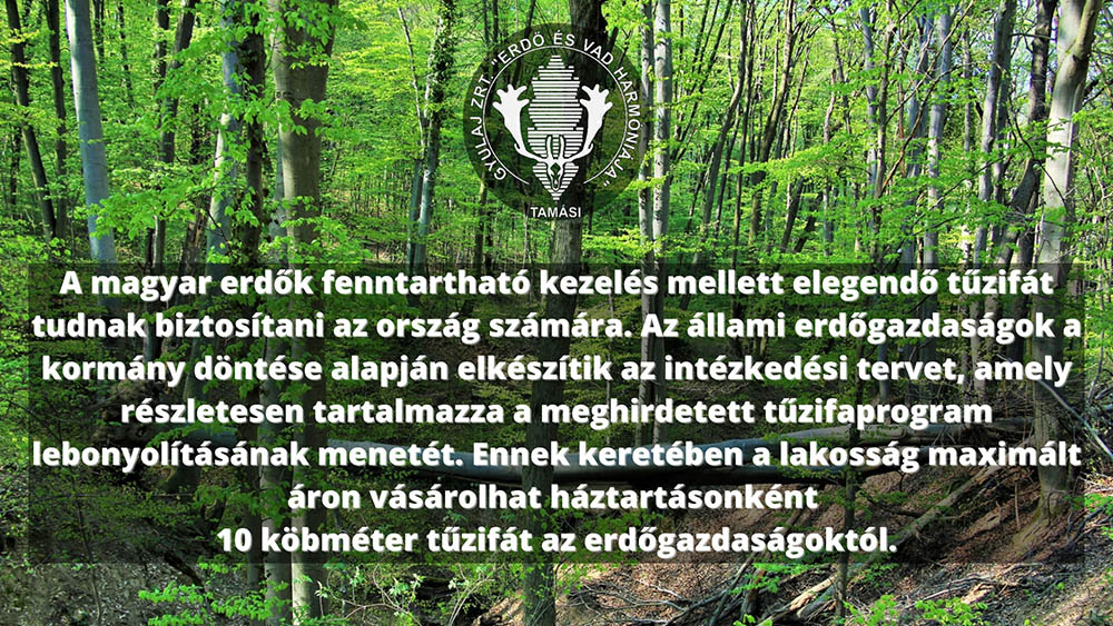 „A magyar erdők fenntartható kezelés mellett elegendő tűzifát tudnak biztosítani az ország számára. Az állami erdőgazdaságok a kormány döntése alapján elkészítik az intézkedési tervet, amely részletesen tartalmazza a meghirdetett tűzifaprogram lebonyolításának menetét. Ennek keretében a lakosság maximált áron vásárolhat háztartásonként 10 köbméter tűzifát az erdőgazdaságoktól.”
