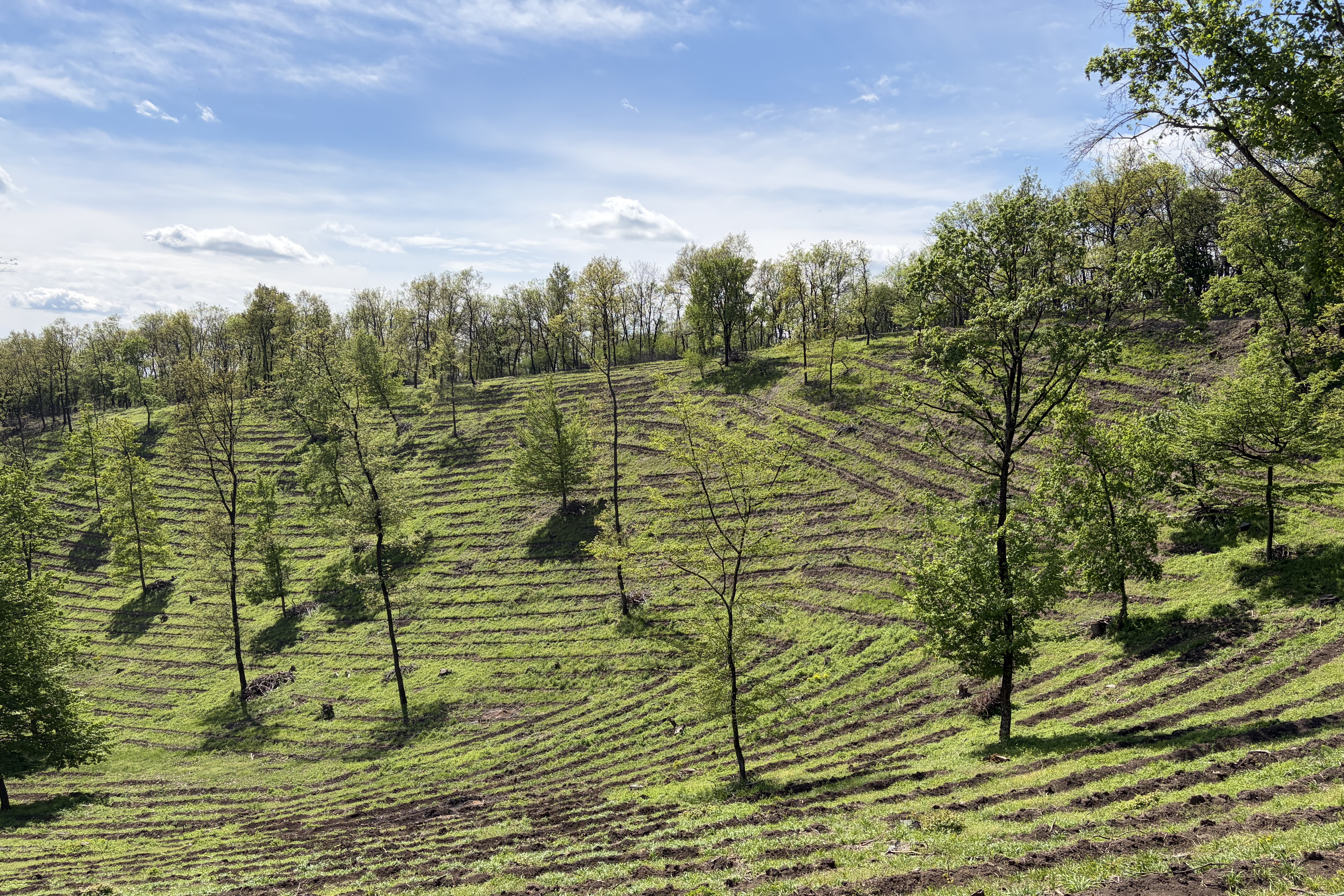 Örömteli, hogy az elültetett kis facsemeték a meredek oldalakon és a völgyekben kialakított pásztákban 7-9 féle fafajból elegyesen kerületek a talajba, nagyon nehéz és megfeszített emberi kézi munkával.